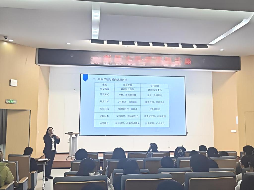 随后,王秀丽老师分享了自己申报横向科研课题的经验,她提到在与企业对接时,精准把握对方需求是成功的关键。同时,她强调了团队协作的重要性,组建专业的科研团队能够更好地解决复杂问题,提升课题的创新性和实用性。她的经验为在场教师提供了宝贵的借鉴,激发了大家对横向课题申报的兴趣和信心。