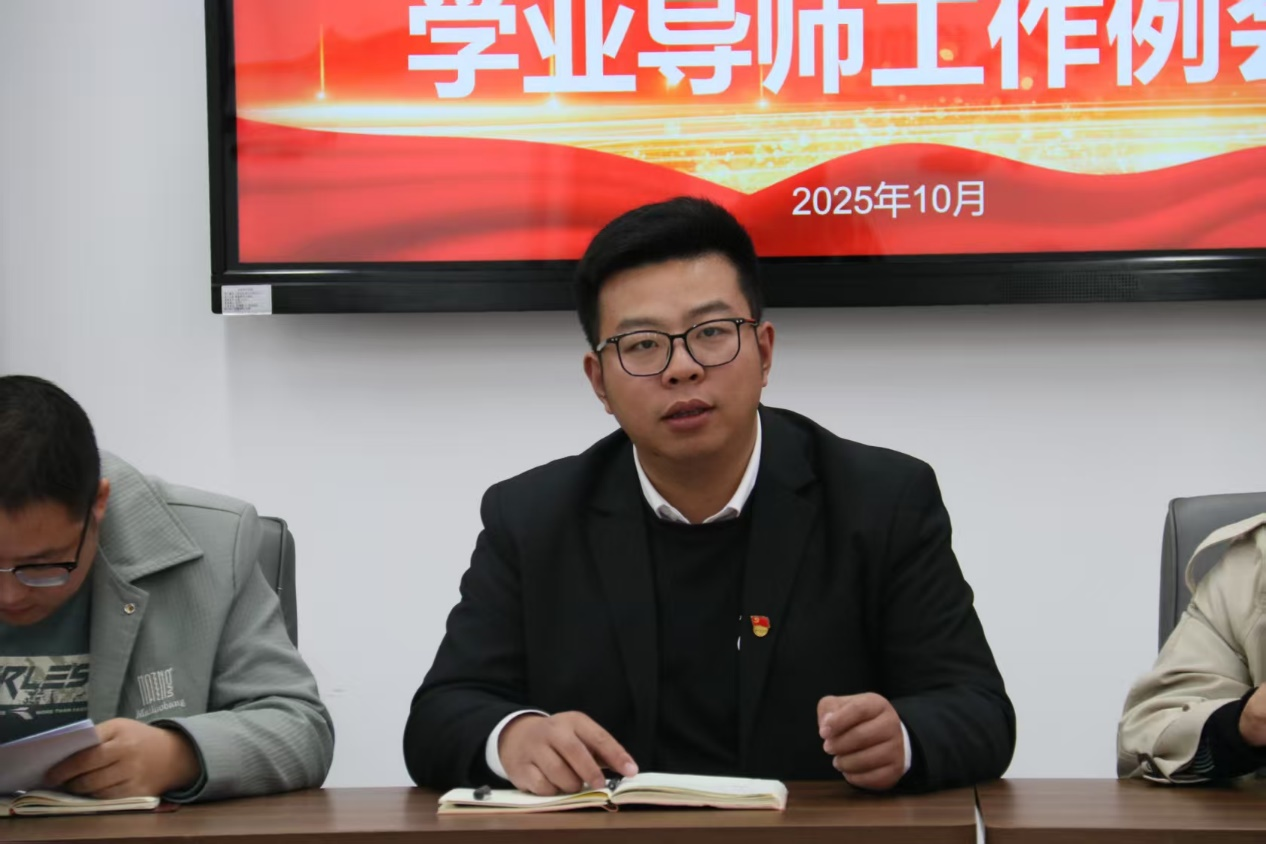 会议伊始,学业导师负责人石文老师就学业导师工作要求进行了系统且细致的阐述。石老师从学业规划指导、专业学习帮扶、科研兴趣引导、职业发展启蒙等维度,明确了学业导师在学生成长全周期中的职责边界,强调导师需主动对接学生需求,建立常态化沟通机制,为学生打造个性化的学业成长路径。