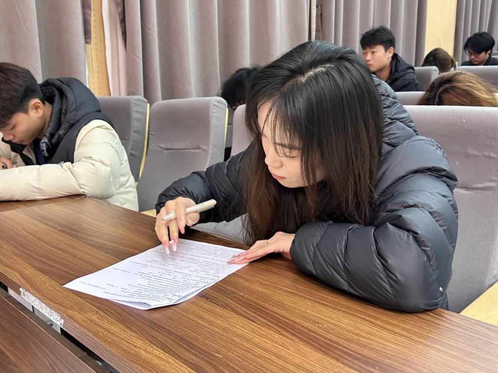 11月24日,医学院2025年下半年入党积极分子培训结业考试在107室有序开展。本次考试聚焦培训核心内容,试题涵盖党的基本理论、党史脉络、方针政策等多维度知识,全方位检验学员的培训学习成果。考场上,学员们专注审题、认真作答,以严谨的态度完成每一道题目,既展现了对党的理论知识的扎实掌握,也以实际行动践行了培训中锤炼的严谨作风。这场结业考试不仅是培训成效的“验收台”,更让学员在巩固理论的过程中进一步坚定信仰,为后续以更饱满的热情向党组织靠拢、以更扎实的素养投身医学事业蓄力赋能。