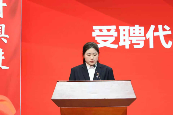 本科护理学2507班郭思敏同学作为班委代表发言,她表示将牢记服务宗旨,主动担当作为,全力配合学院做好班级建设,努力成为同学们信赖的“贴心人”;本科康复治疗学2502班刘昭华同学以朋辈导师代表身份表态,将传承“传、帮、带”优良传统,用自身经验助力新生适应环境、规划学业,做好成长路上的“引路人”。