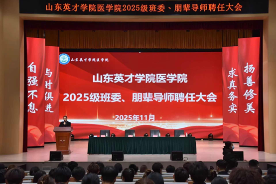 为进一步加强学生自我管理、自我服务体系建设,筑牢班风学风建设的核心力量根基,充分发挥学生骨干的桥梁纽带与朋辈引领作用。11月26日,医学院在英才音乐厅隆重举行2025级班委、朋辈导师聘任大会。医学院党总支副书记张国栋、年级长薛阳阳、张乐雷及全体辅导员出席大会,2025级全体受聘班委及朋辈导师参加大会,会议由医学院团务专员、年级长刘晴主持。
