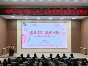 感恩是看清幸福的"显微镜"。为了让同学们看清那些被忽略的温暖细节--父母的牵挂、老师的教诲、同学的陪伴,山东英才学院医学院于11月24日开展了一场特别的感恩主题班会。本次班会的嘉宾有:医学院党总支副书记张国栋;本科护理学2502班靳泽坤妈妈,高职护理2503班叶锦瑶爸爸,医学院全体辅导员老师。