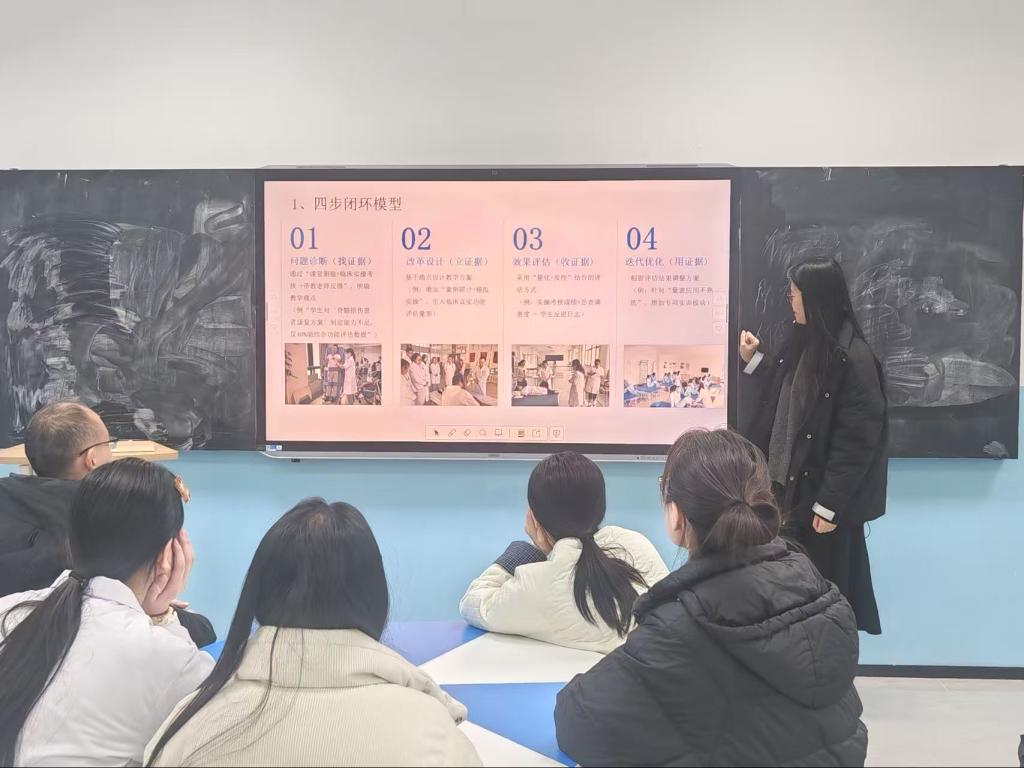 2025年12月2日,康复治疗学系举办“AI赋能的教学设计迭代与课件新生工坊”智能技术赋能教学专题研讨会,会议由刘丽楠教师主持,本系全体教师参加。