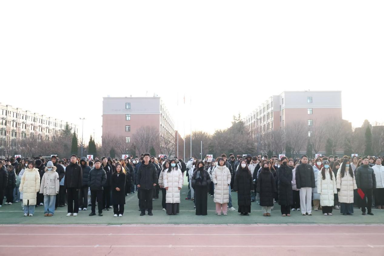 为传承爱国主义精神,厚植医学生家国情怀与责任担当,12月8日,医学院于南校区田径场举行“践行强国使命 培育奋进学风”主题升旗仪式。教学副院长王丽群、全体辅导员及2025级学生共同参与,升旗仪式由党总支副书记张国栋主持。