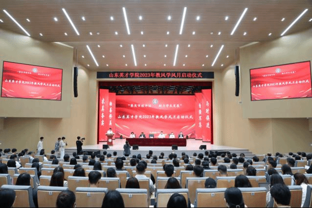 学校副校长孙文红宣读《山东英才学院关于开展教风建设活动月实施方案》,学生工作处处长张东飞宣读《山东英才学院2023年学风建设实施方案》。