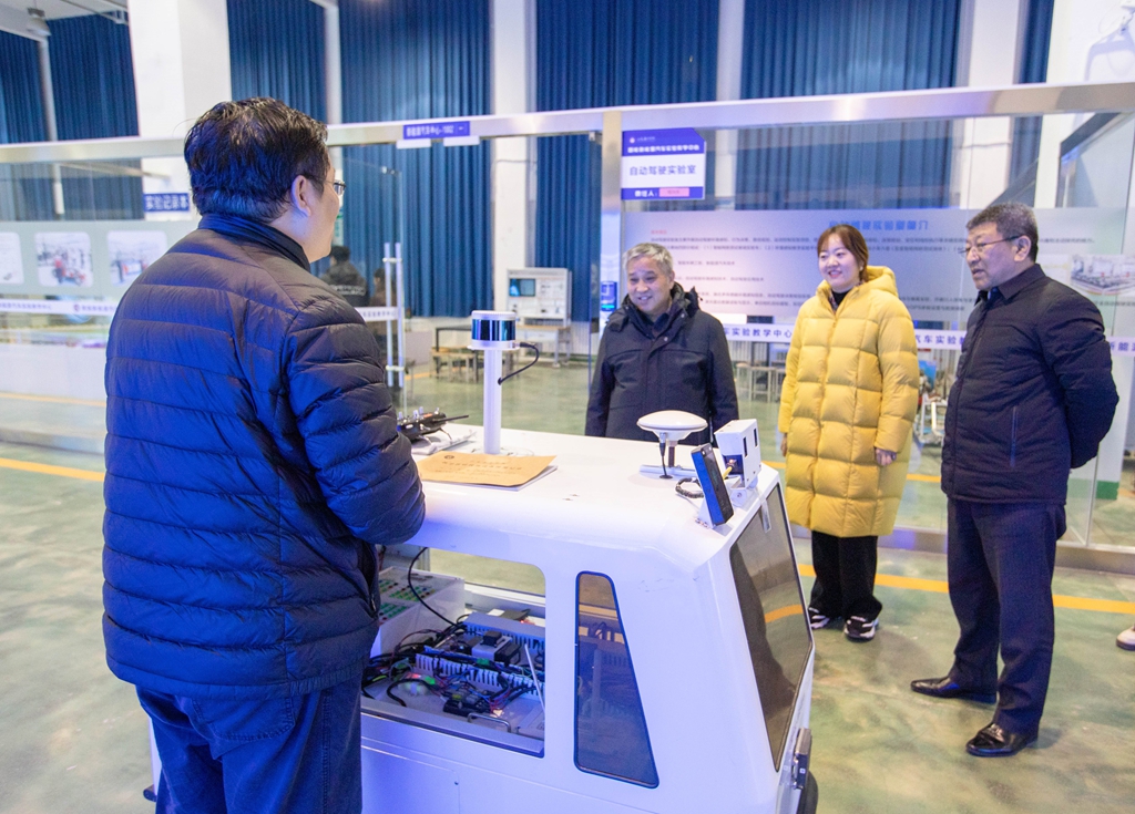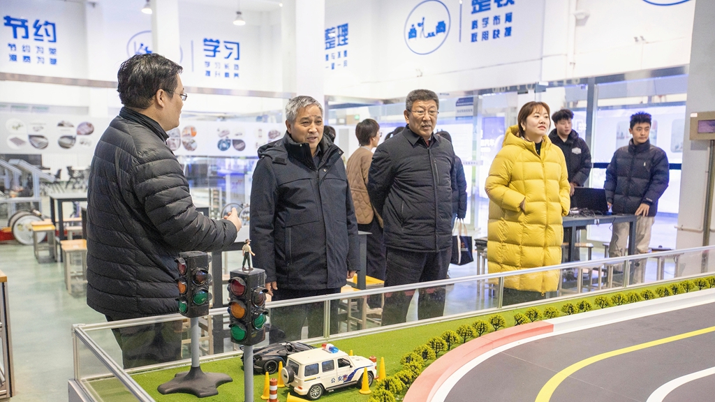 会后,秦方奇校长一行实地参观了学校信息技术实验教学中心、智能新能源汽车实验教学中心等场所,详细了解了我校在智慧教学环境建设方面的整体规划、技术应用与实际成效,并就相关设施的教学融合路径与现场负责人进行了深入交流。