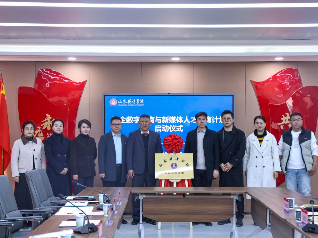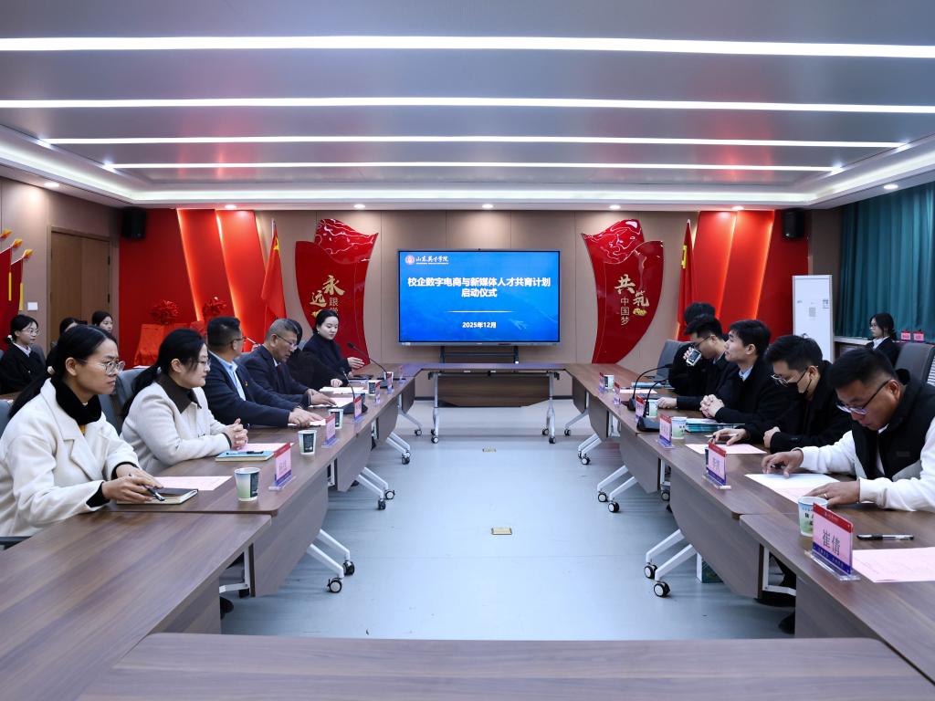 2025年12月10日上午,“校企数字电商与新媒体人才共育计划”启动仪式在山东英才学院商学院楼408会议室举行。学校副校长崔奎勇、商学院(国际学院)院长赵坤、副院长王鸾,启迪之星(济南·起步区)执行总经理赵欣,山东新视觉数码科技有限公司校企合作部总监李华宇等校企代表共同出席。