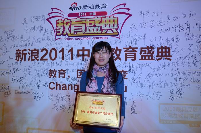 12月10日下午,主题为“教育,因你而改变”的第四届新浪2011中国教育盛典在北京璀璨绽放,600多位教育界专家学者出席今天的盛典,揭晓2011年度十大教育新闻、领军中国教育人物、微博风尚大奖等重要奖项。我院凭借雄厚的实力和显著的成绩荣获“2011最具综合实力民办高校”殊荣。