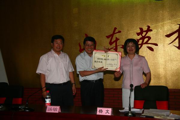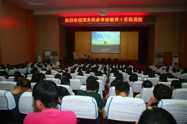 2012年6月6日,国务院参事、我国著名经济学家,亚洲开发银行原首席经济学家,友成基金会常务副理事长,北京大学中国经济研究中心、武汉大学、曁南大学兼职教授汤敏博士莅临我校作专题报告并受聘为我院客座教授。山东省委政策研究室王侠主任,我院董事长杨文教授、副院长刘存刚博士出席报告会。