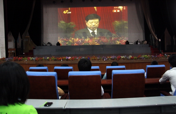 5月24日上午9点,学院团委组织团员青年代表收看了山东省第十次党代会的开幕式现场直播。团委书记龙新良、组织部部长王坤丽、艺术团指导老师肖帅与团员青年共同收看了开幕式实况。