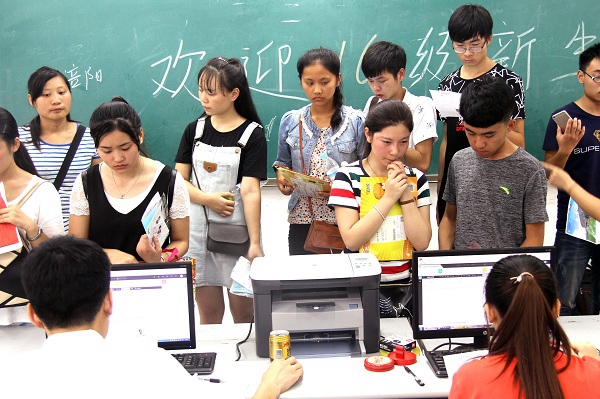 8月11日到12日两天我校两校区报到2000余人,大多数是外省考生,主要来自四川、贵州、重庆、河南、内蒙古等地,预计报到高峰还会持续两到三天。