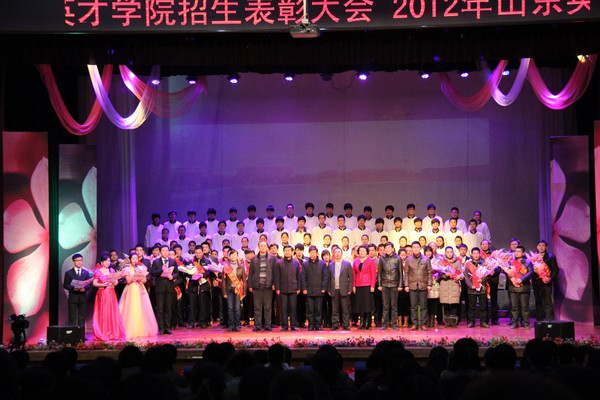 12月27日,“与爱携手,共谱英才新乐章——2012年度山东英才学院招生表彰大会”在大学生活动中心举行。学院党委书记、院长夏季亭教授,学院副院长刘翠兰教授、副院长王兆良研究员,副院长张宗胜副教授出席了表彰大会,出席表彰大会的还有二级学院及各职能部门教职工代表、二级学院学生代表及部分教职工家属代表等1380余人。