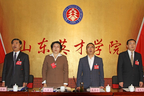 夏书记指出,2015年学校以改革创新的勇气,通过深化组织机构改革、大力推进薪酬制度改革等举措大力推进学校持续健康发展,学校在改善办学条件、提升内涵发展、创新创业教育、人才培养质量等方面持续推进,学校的美誉度和社会影响力显著提高,已经成为山东民办高校的一面旗帜,全国知名的民办高校。夏书记进而阐述了学校未来工作的“两个全面、五个工程和六项重点”,明确了今年的工作目标和发展方向。他号召全体英才人,勇于面对挑战,不断解放思想,切实转变发展方式,以百倍的信心和热情投身到未来的工作中,为进一步提升我校办学质量,为国家社会培养更多应用型社会人才而奋斗。