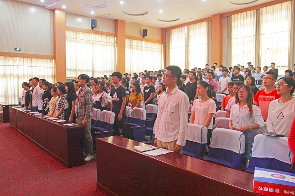 2013级物流管理专业杨浩杰同学代表入党积极分子发言,承诺一定会认真学习,不虚度、不应付、不止步;积极努力,做到“平时学习能看出来,关键时刻能站出来,危难时刻能挺出来”,争取早日加入党组织。