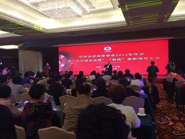 4月8日,中国女企业家协会2016年年会暨“杰出创业女性”、优秀团体会员、优秀工作者表彰颁奖大会在北京召开。四百余名绰约多姿、风采各异的女企业家齐聚一堂,杨文董事长作为协会副会长参加会议。