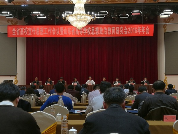 3月31日,全省高校宣传思想工作会议暨山东省高等学校思想政治教育研究会2016年年会在潍坊召开。会议交流总结了去年全省高校宣传思想工作,研究探讨了新形势下加强和改进高校宣传思想工作的思路和措施,对今年工作作出了部署安排。教育部思政司副司长王光彦、省委高校工委副书记黄琦出席会议并讲话。全省各高校党委分管校领导、党委宣传部部长,山东省高等学校思想政治教育研究会理事参加了会议。