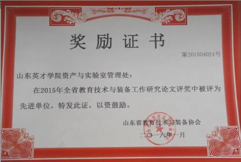 近日,山东省教育技术与装备协会公布了2015年度优秀论文获奖名单。我校喜获佳绩,共获得一等奖2项,二等奖4项,三等奖12项。同时,我校资产与实验室管理处由于组织工作做得好,被山东省教育技术与装备协会评为2015年研究论文评奖先进单位。