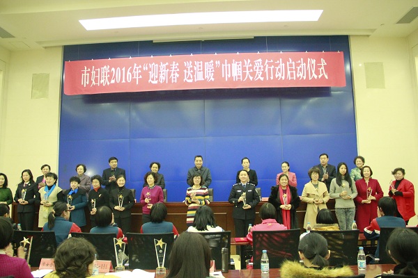刘勤主席通报了巾帼关爱工作情况及2016年新春送温暖工作安排,并向受表彰人员颁发证书。