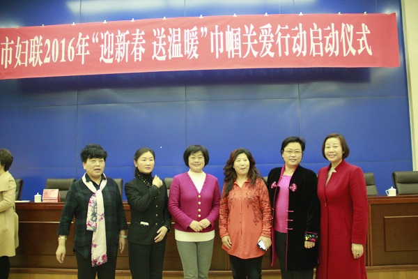 1月28号下午,市妇联2016年迎新春送温暖巾帼关爱行动启动仪式在龙奥大厦举行,济南市女企业家协会组织参与2015年慈善捐助活动的女企业家们参加了本次会议。市委常委、市总工会主席王以才,市妇联主席刘勤,我校董事长、济南市女企业家协会会长杨文等出席了会议。