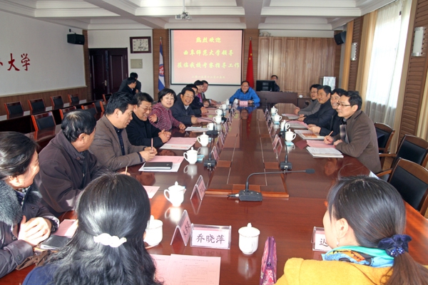 12月15日,曲阜师范大学党委书记荆兆勋,副校长扈庆学,校办主任夏云杰、校友办主任赵坤等一行4人莅临我校考察交流。学校董事长杨文,副院长刘存刚、崔奎勇、周忠等校领导陪同考察并座谈。座谈会由刘存刚副院长主持,校办、教务处、学工部、科研处、基础部、统战部、就业指导与校企合作处,公共体育教学部等部门领导参加座谈会。