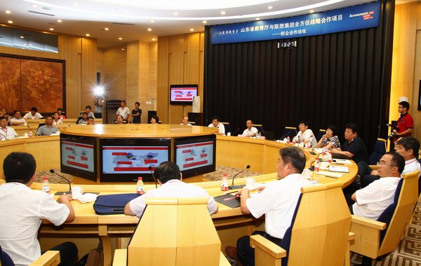 为进一步贯彻落实《国家中长期教育改革和发展规划纲要(2010-2020)》,山东省教育厅与联想集团将在创新型IT人才培养、双师型教师培养模式创新、企业管理实践进校园、教育信息化建设等方面展开全面合作,推动教育与产业深入结合,促进山东现代职业教育体系构建。具体将围绕以下几方面展开合作: