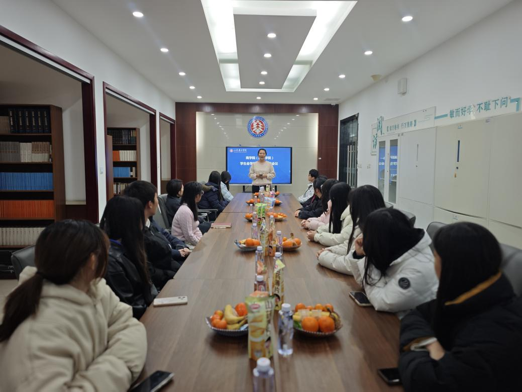 学生会执行主席于珺涵结合学生会整体工作情况,介绍了学创部为商学院学风建设和教育教学等方面的服务与贡献,并希望未来能持续发挥示范引领作用,为商学院营造良好学习氛围。