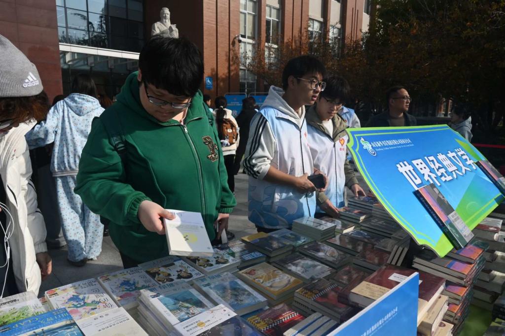 秋风送爽,书韵飘香。近日,山东英才学院隆重举行“青春阅读季”校园图书展销暨文化市集活动开幕仪式。学校领导、山东新华书店集团有限公司领导及师生们齐聚一堂,共同见证此次校园文化盛宴盛大开启。本次活动统筹策划图书展销、文化市集、“你荐书,我买单”、名家讲座四大板块,以丰富的文化活动点燃学子阅读热情,为校园注入浓郁书香。