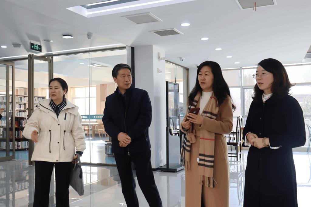 代表团首先实地参观山东英才学院党建与思政教育基地,随后走访图书馆智慧阅读体验区、开放式阅览区、国风自习室、思政体验区等特色阅读空间,沉浸式感受学校图书馆在空间布局与服务功能方面的创新升级。