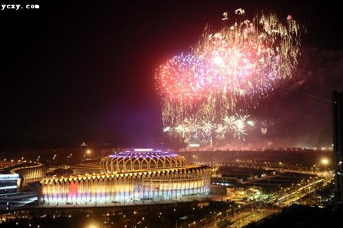 圣火耀泉城,健儿展风采。中华人民共和国第十一届运动会16日晚在山东省济南市隆重开幕。中共中央总书记、国家主席、中央军委主席胡锦涛出席开幕式并宣布运动会开幕。