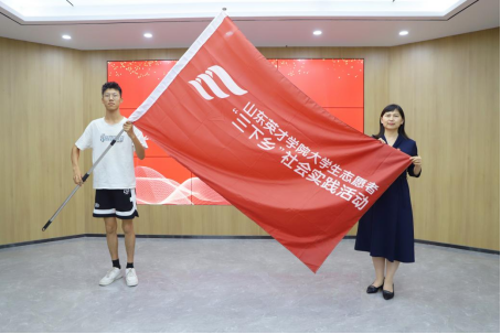 张东飞处长宣读《关于组织开展2023年暑期“三下乡”社会实践活动的决定》。孙玉香副书记为2023年暑期社会实践团代表授旗。