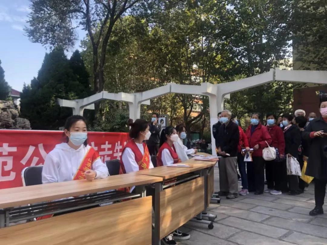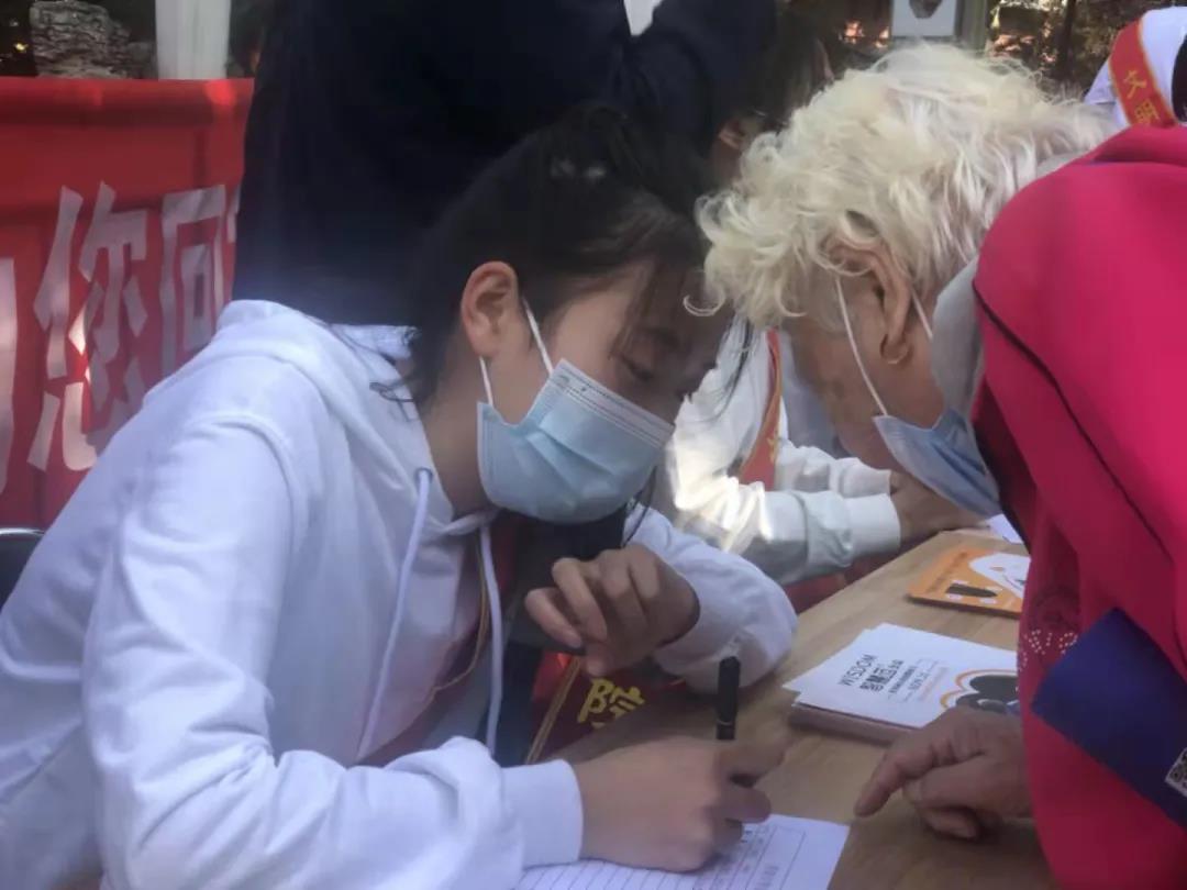 为了让更多人了解并知晓这个活动,同学们分工合作为老人们进行讲解,宣传。