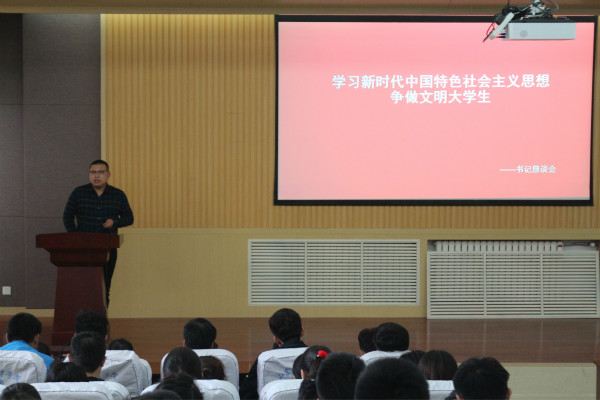 大学生正值青春年华,处于人生的黄金时代,大学是树立良好世界观、人生观形成的重要时期,大学生正值青春年华,处于人生的黄金时代,为树立学生的文明素养,加强道德观念,做一个文明的大学生,2018年3月29日商学院在1001教室举行了“学习新时代中国特色社会主义思想,争做文明大学生”书记恳谈会。参加此次会议的有学生会全体成员。