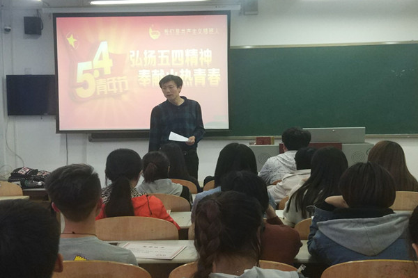 2018年4月9日下午6点,外国语与国际交流学院祝景朋书记在外语楼3005教室召开了“弘扬五四精神,奉献火热青春”五四评优部署会议。参加此次会议的有外国语与国际交流学院基层团委、学生会学生骨干。