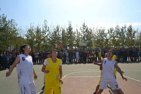 2013年11月4日中午12时,山东英才学院在篮球场进行了13级迎新杯女篮对抗赛,今天对阵的双方是:商学院代表队与建筑工程学院代表队。
