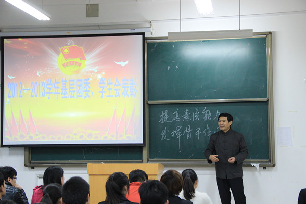 2013年11月17日晚,是文法英才迈过了又一年的工作的总结时。在这里,我们进行了新一届团骨干的任命及对上一届的优秀同学给予表彰的文法全员大会,在这里,我们见证的是光辉岁月,在这里,我们期盼的是美好的明天。