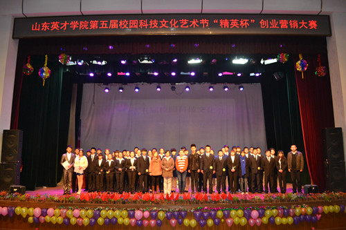 2013年11月19日 中午12时30分,由山东英才学院主办,商学院承办的“精英杯”创业营销大赛总决赛在大学生活动中心举行。出席本次决赛的评委有:山东英才学院教务处副处长、赵燕老师、优秀指导老师王素玲老师、商学院基层团委书记邢辉、院学生会外联部部长吴秀宝、外国语学院的陈洁、医学院的孙霞。以及到场的嘉宾是:山东英才学院学生会主席及各二级学院学生会主席。