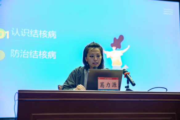 在讲座中,传染病防制科葛力源深入浅出地阐述了结核病的危害性、症状表现、易感染人群及防治措施。她强调,结核病虽然容易在学生群体中传播,但也属于可防可治疾病,鼓励同学们在日常生活中养成良好的生活习惯,当出现疑似症状时要配合学校做好筛查工作,拒绝过度焦虑、恐慌。同时她也指出学校作为育人的主阵地,要积极担当责任使命,把好新生入学体检关、常规防控落实关和学校疫情处置这“三关”,加强医校联动,共建健康校园。