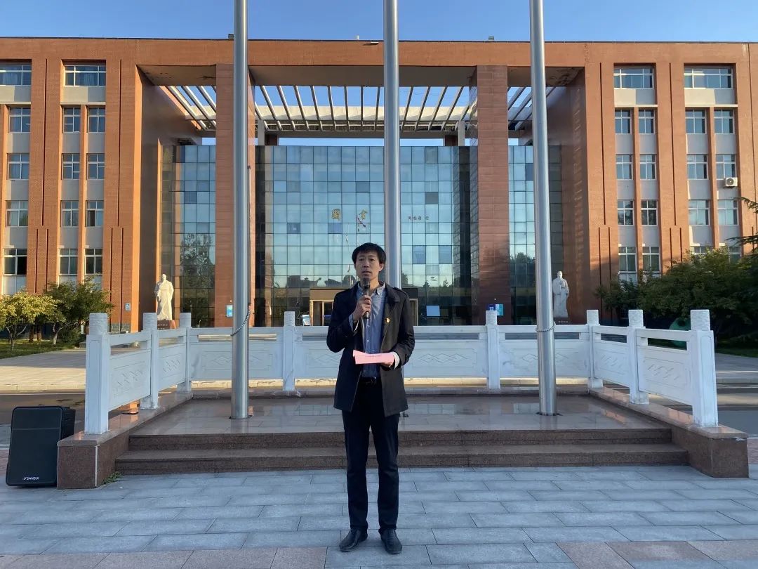 为热烈庆祝中华人民共和国成立73周年,大力弘扬爱国主义精神,引领广大团员及青年学生不忘成长初心、牢记青春使命,以实际行动迎接党的二十大胜利召开,汇聚新时代青春力量。10月10日清晨,音乐舞蹈学院在孔孟广场隆重举行升旗仪式,参加本次活动的有音乐舞蹈学院直属党支部书记祝景朋、全体辅导员老师及学院2022级全体学生。