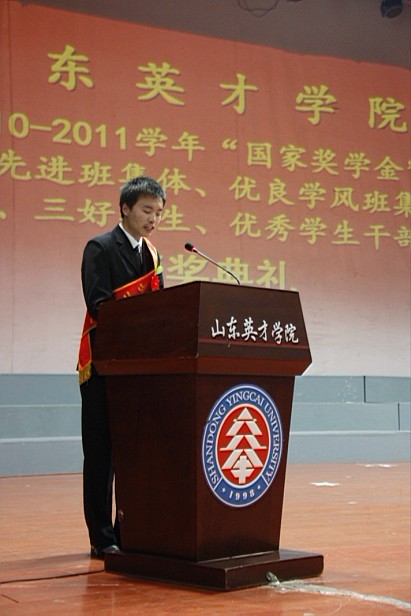 我本是一名普通的学生,却在坎坷的道路上得到了那么多人的鼓舞和帮助。因此,进入山东英才学院以来,我始终以一颗谦卑、热情而又执着的心来对待一切,始终以朴实的性格,实干的作风,豁达的态度,乐观的精神去勤勤恳恳地学习,踏踏实实地走好人生之路。学好功课并不难,勤于实践也不难,但要“全方位发展,争做创新型人才”却不是件容易的事。两年的大学生活让我深深地体会到大学是一个充满竞争的地方,我一直以“学会做人,学会做事,学会学习”为人生目标,也许正是这种目标的指引,才让我有幸拿到了“国家奖学金”。当然,获得这份荣誉之后,也不免让我感受到更大的压力和紧迫感,因为她肩负着国家的使命和社会对当代大学生的期望……