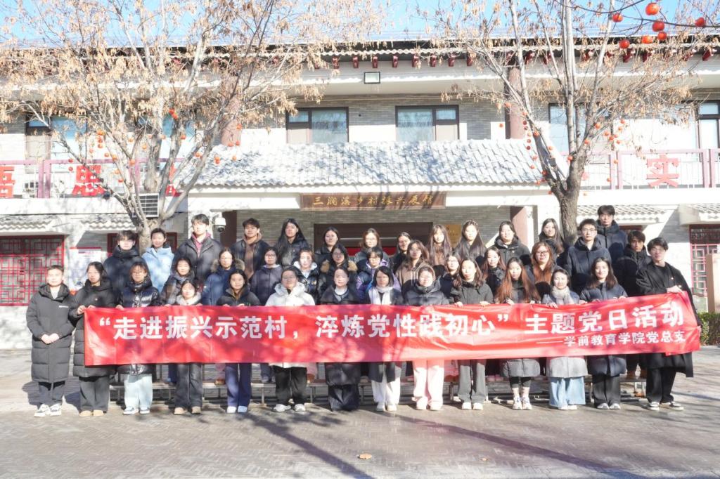 为深入学习贯彻习近平新时代中国特色社会主义思想,传承红色基因,汲取奋进力量,12月25日,学前教育学院党总支组织师生党员前往章丘三涧溪村开展主题党日教育活动,让党员们在实地研学中感悟乡村振兴的实践伟力,锤炼党性修养。
