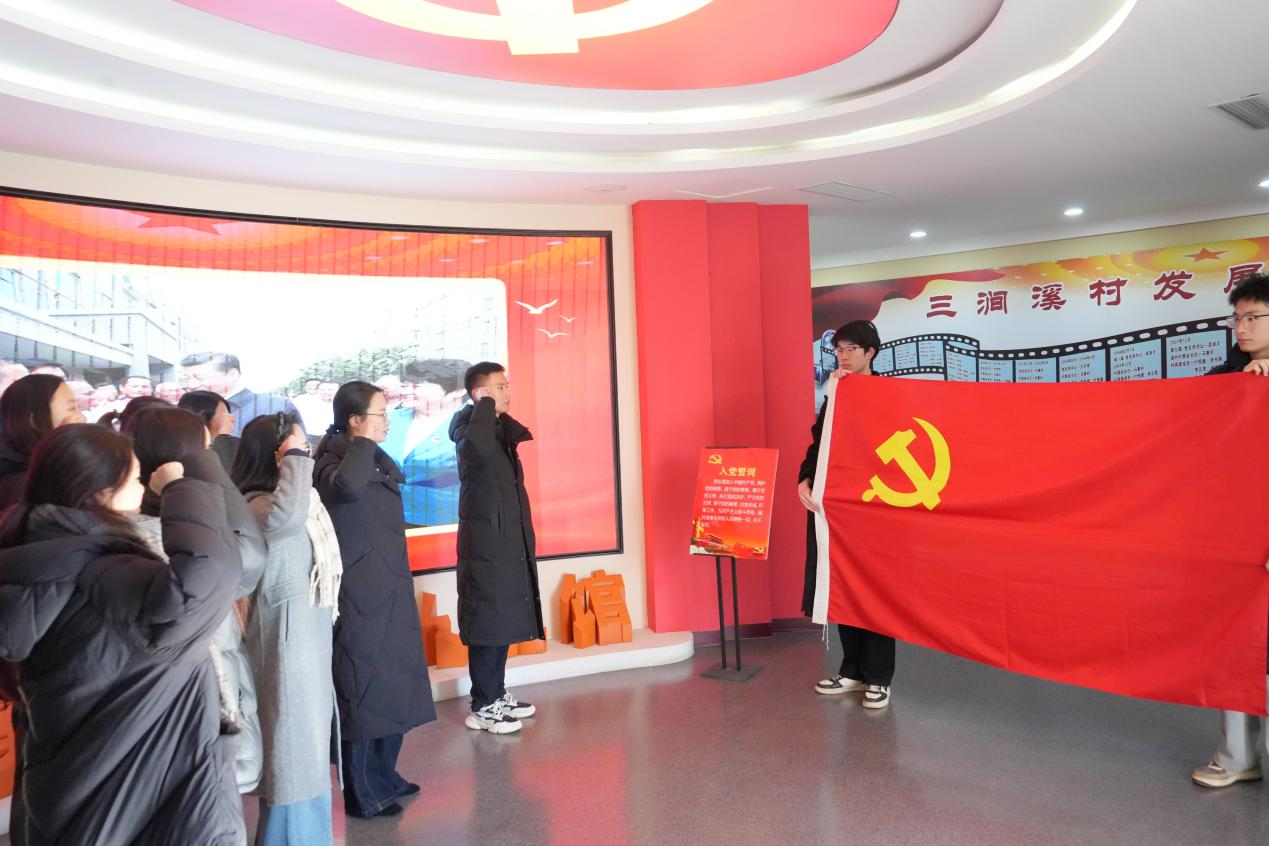 参观后还开展了重温入党誓词活动,面对鲜红的党旗,全体党员高举右拳,庄严宣誓,铿锵有力的誓言进一步坚定了党员们的理想信念。