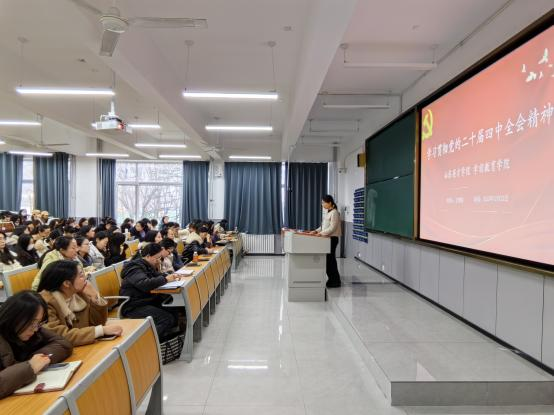 为深入解读全会精神,凝聚育人共识,明确使命担当,12月23日,学前教育学院举办学习贯彻党的二十届四中全会精神宣讲活动。活动由学前教育学院党总支书记、山东英才学院学习贯彻党的二十届四中全会精神宣讲团成员王琪瑶主讲。