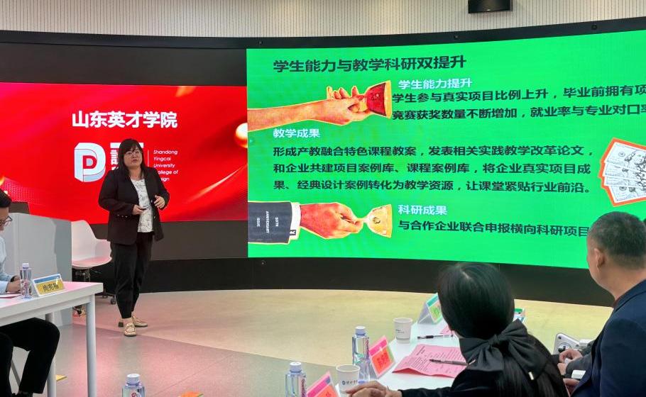 视觉传达设计主任李俊峰、环境设计专业负责人郭莹莹、产品设计主任司海波分别汇报,针对各专业对应的校企合作工作室的具体定位、合作内容与发展愿景进行详细介绍。他们表示,将以工作室为平台,紧密对接企业岗位需求,优化人才培养方案,强化实践教学环节,确保人才培养与产业发展同频共振。